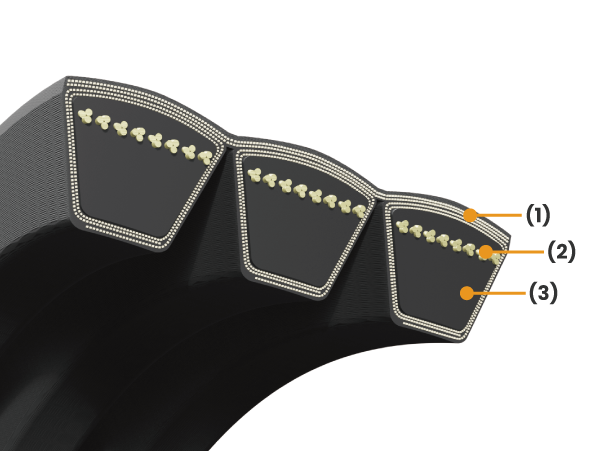 This fabric is highly elastic and can flex without strain during belt rotation, and is highly resistant to abrasion.(2) Cord: High-strength aramid cord