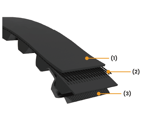 By using a special material for the tooth fabric and narrowing the width due to the high power rating, we have achieved 12-16% reduction under the same conditions of use.